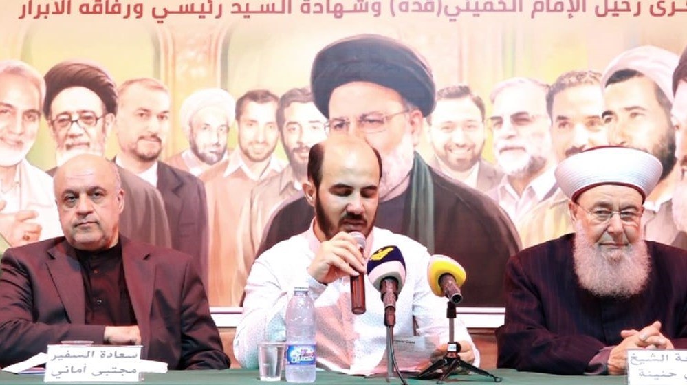 بدوره أکد الشیخ حتینة فی مداخلته بأن الوحدة الإسلامیة لم تکن عند الإمام الخمینی (قده) شعارا وعنوانا وکلاما سیاسیا فضفاضا بل واقعا على الأرض، تمثل بدعم خیارات الشعوب فی المقاومة لتحریر ارضها، ومنها الشعبین الفلسطینی واللبنانی.